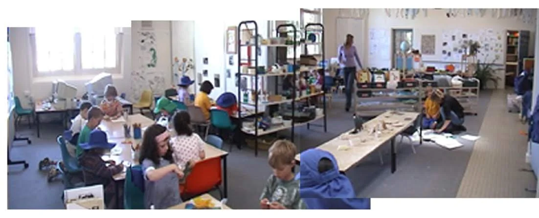 Design of the environment for the Alphington project was to support collaborative teaching and learning. Children were to be active and autonomous participants in the learning process. Opportunities were to be provided for children to express their ideas in a wide variety of media and their ability to engage in ongoing projects was to be nurtured during unbroken sessions – approx. 2 ½ hours each day.